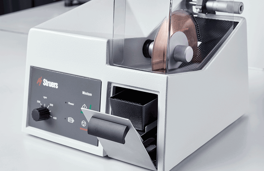 Con Minitom potete tagliare pezzi materialografici piccoli e delicati che non tollerano il calore generato dal taglio ad alta velocità. Indipendentemente dal tipo di materiale, il suo sistema di alimentazione a gravità consente di tagliare campioni senza deformazioni con un'elevata riproducibilità.