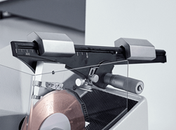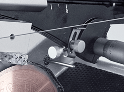 Questo braccio funge da bilancia con due pesi. Uno bilancia il portacampioni con il campione, mentre l'altro regola con precisione la pressione di taglio richiesta. Durante il taglio, il braccio si sposta verso il basso sopra il disco di taglio sotto la pressione del peso del taglio.